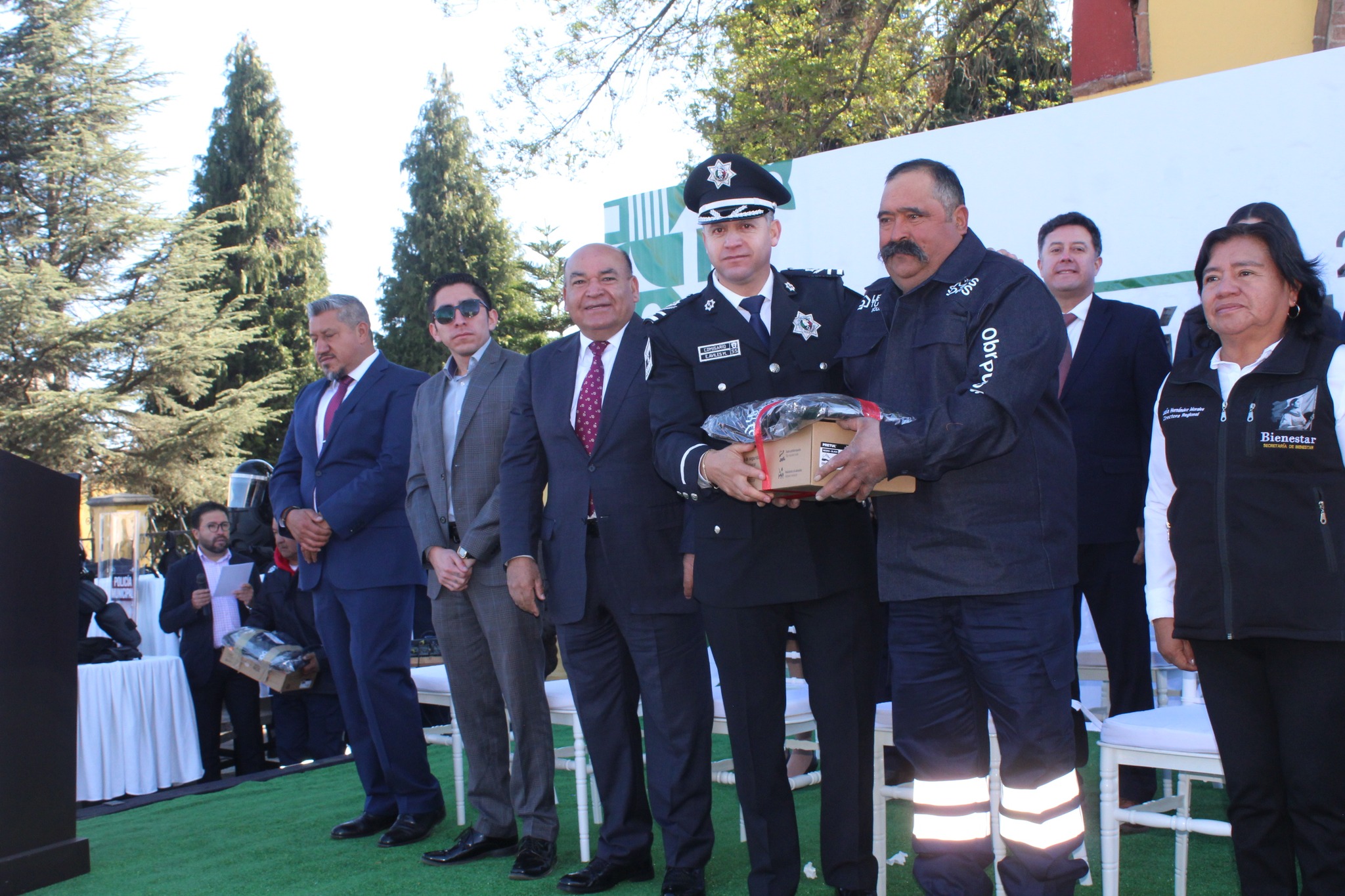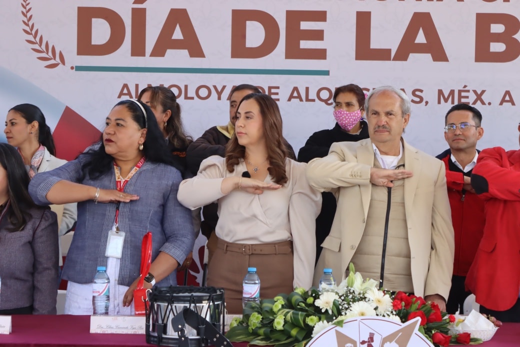 Conmemoran el Día de la Bandera con acciones en favor de la educación y la seguridad en Almoloya de Alquisiras.