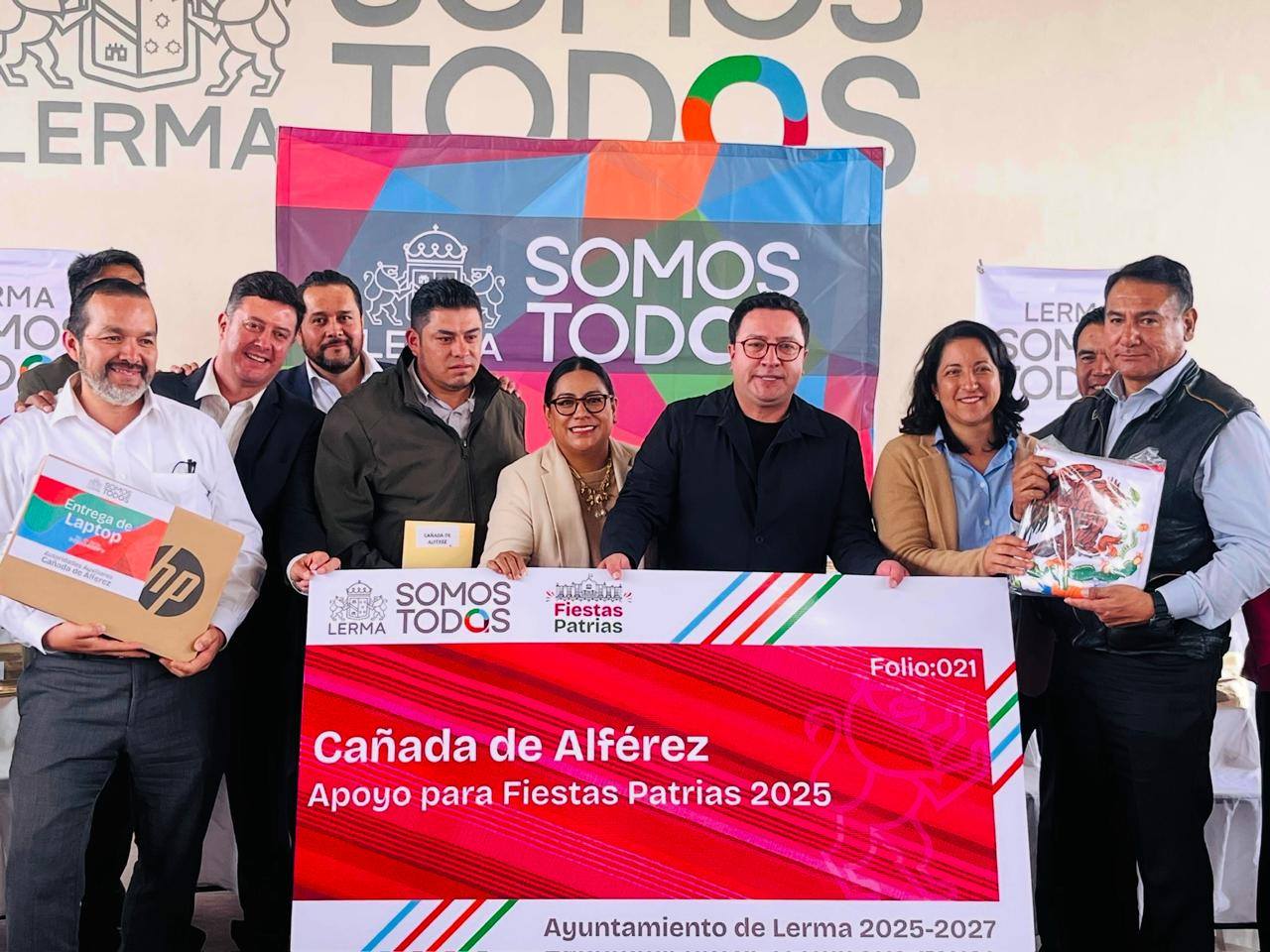 Autoridades auxiliares de Lerma reciben apoyos para fiestas patrias y equipo de cómputo
