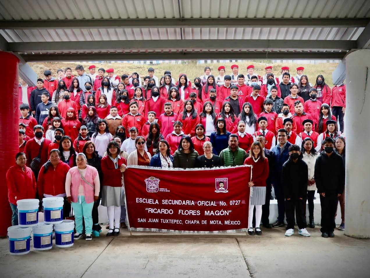 Chapa de Mota, Estado de México.– Como parte de su gira de trabajo por el municipio, la diputada federal del Partido Verde Ecologista de México (PVEM), María Luisa Mendoza Mondragón, visitó la Escuela Secundaria “Ricardo Flores Magón”, donde realizó la entrega de material para el mejoramiento de la infraestructura escolar.