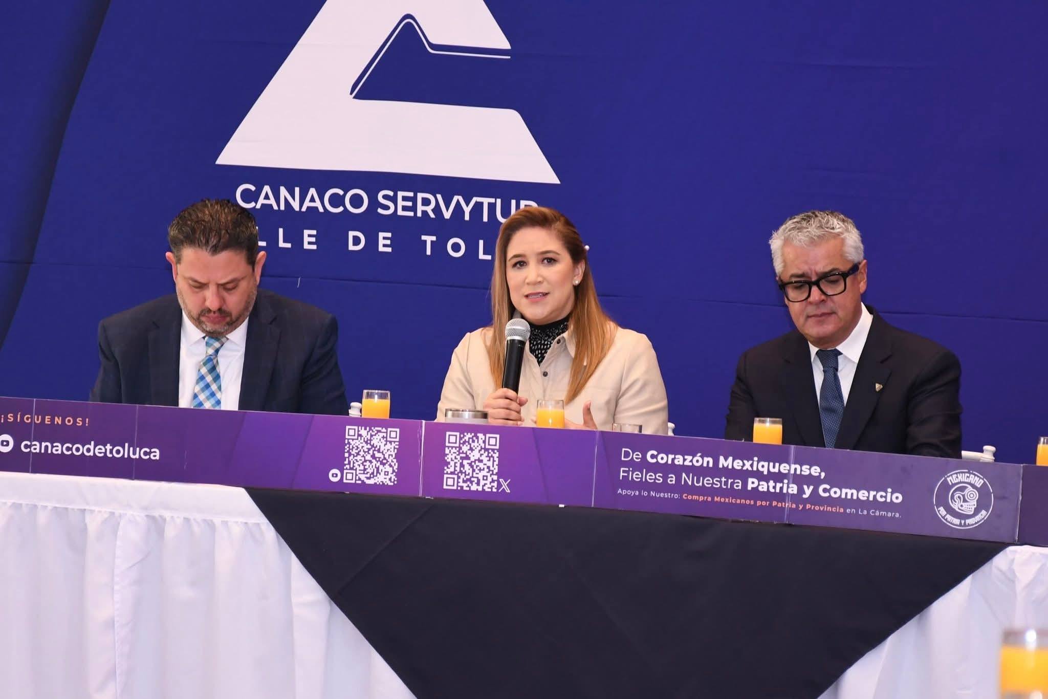 Durante su participación en la Segunda Sesión del Consejo de CANACO Toluca, la presidenta municipal de San Mateo Atenco agradeció al presidente del organismo empresarial, Fernando Reyes Muñoz, por la invitación y reconoció el impulso al programa de asesoría gratuita orientado a fortalecer la digitalización de fabricantes nacionales y marcas de moda y calzado en México.