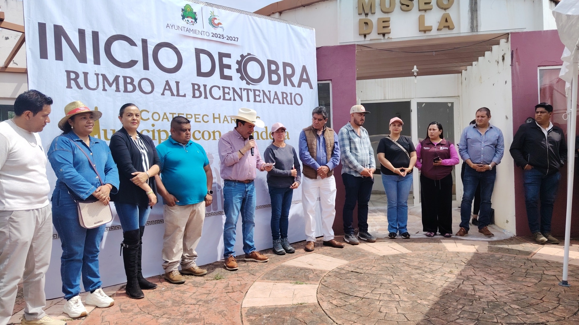 Coatepec Harinas, Estado de México. El presidente municipal Marco Antonio Díaz Juárez, en compañía de integrantes del Cabildo, autoridades auxiliares y representantes del Gobierno del Estado, dio inicio formal a la rehabilitación integral del espacio conocido como el Museo de la Flor, ubicado en la Plaza Estado de México, en el barrio de San Miguel.
