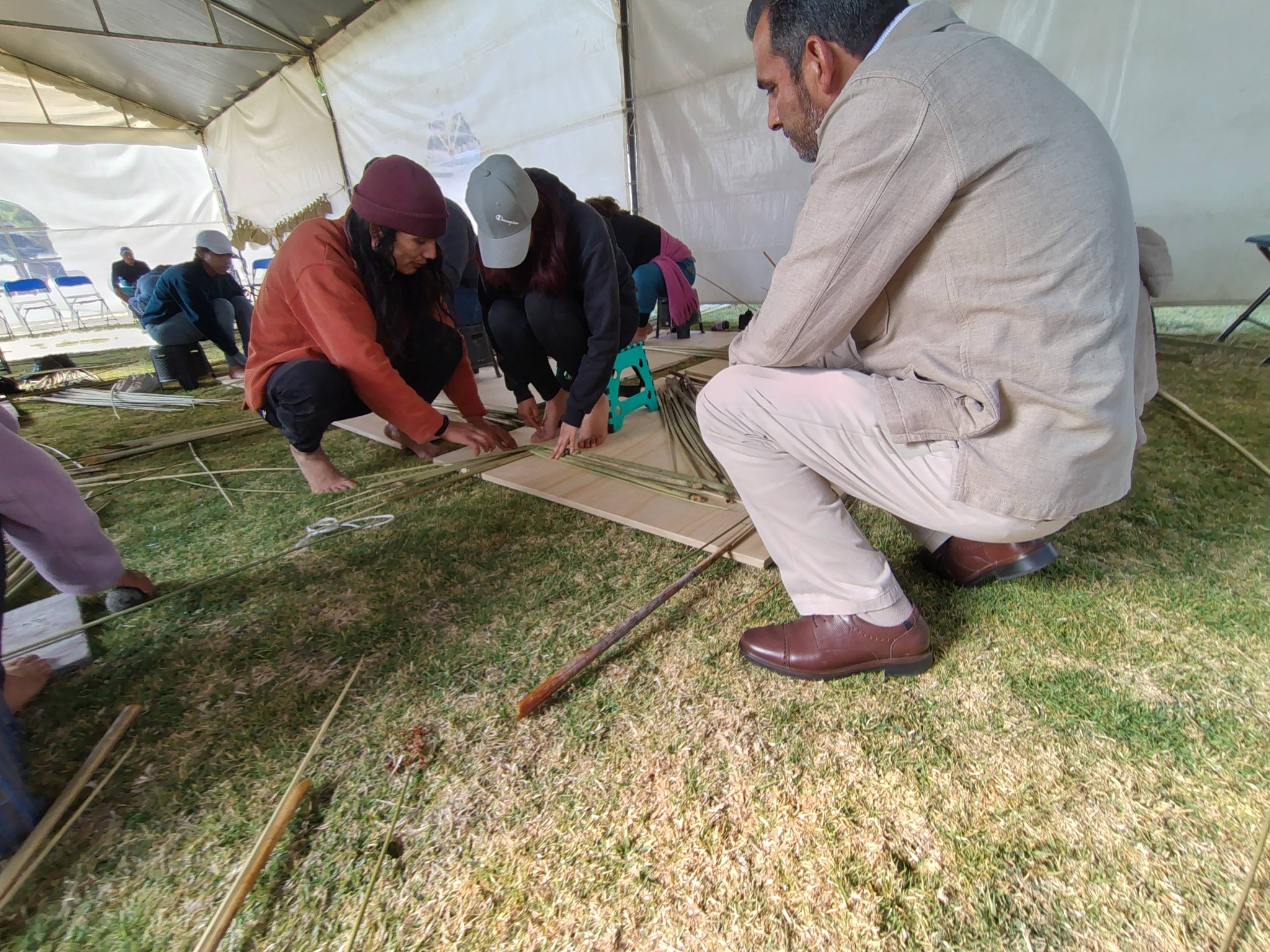 Entre risas, saludos y el sonido del agua moviéndose suavemente, los participantes tomaron en sus manos las fibras de tule. Algunos ya conocían el proceso; otros, por primera vez, observaban con atención cómo esta planta que crece en la laguna puede transformarse en objetos llenos de historia y significado.